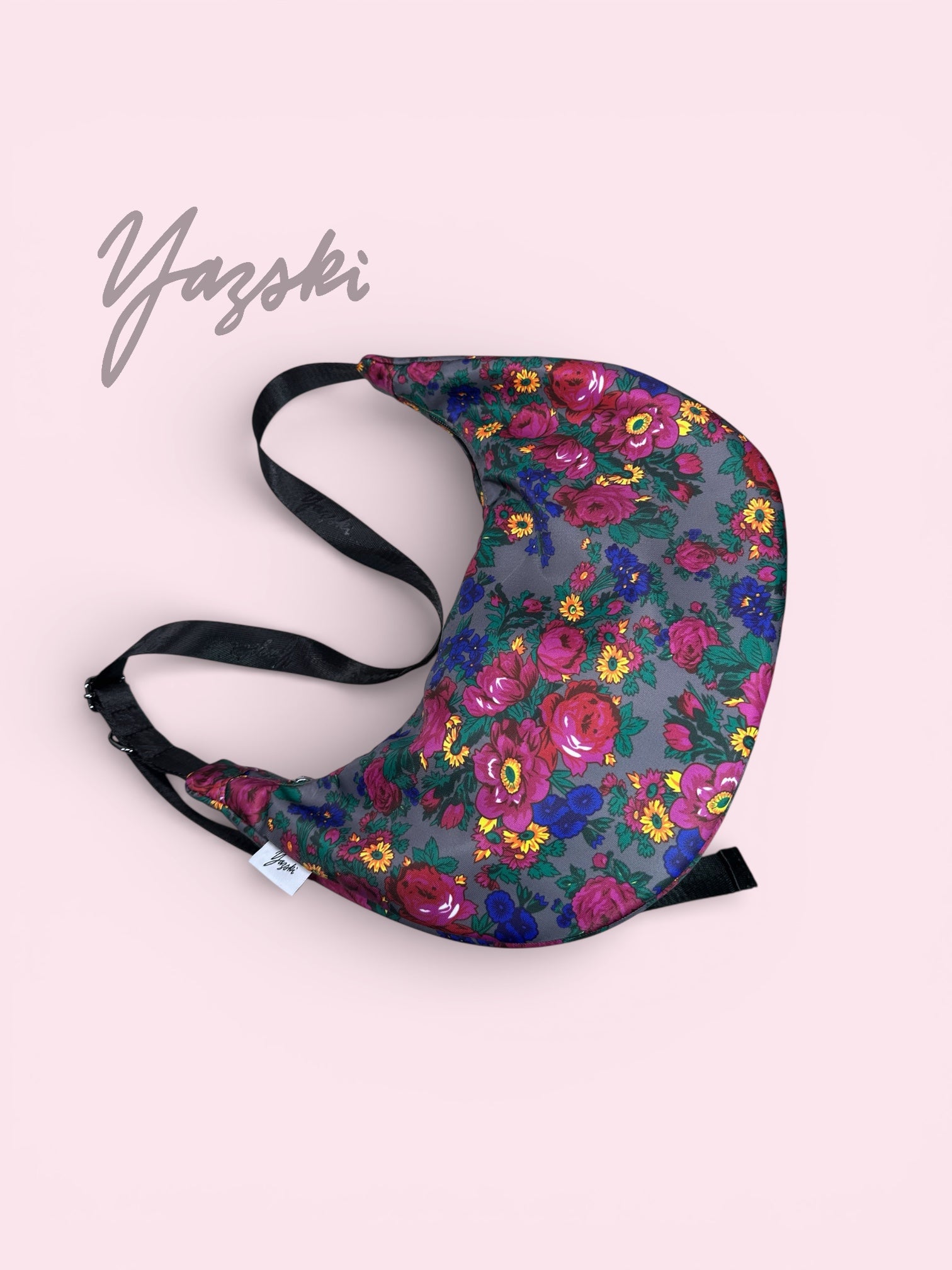 • Load image into Gallery viewer, Gray Floral Masani Crescent Bag
